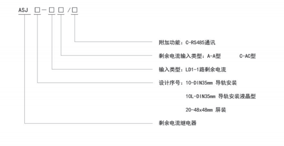 注:1.繼電器可設定功能是指用戶可通過面板上的撥碼開關自行設定繼電器上電初始化狀態,及繼電器的輸出狀態,具體設定方法請參照 5.2 章節。2.儀表可選通訊功能,RS485 接口,Modbus-RTU 協議,型號 ASJ10L-LD1A/C。