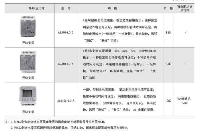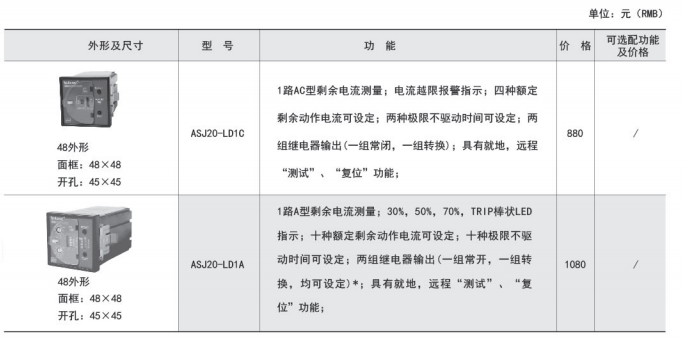 AC 型剩余電流測量;電流越限報警指示;額定剩余動作電流可設定;極限不驅動時間可設定;兩組繼電器輸出;具有就地,遠程“測試”、“復位”功能