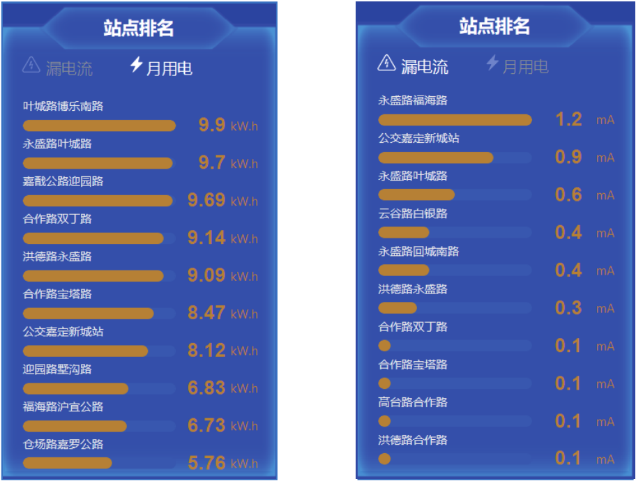 用戶可查詢公交站臺的歷史漏電流數據、報警數據、用電數據;