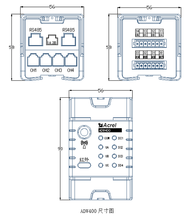 環(huán)保分表計(jì)電設(shè)備ADW400:三相電流,電壓,電能測量,配套3只開口式互感器,電流規(guī)格100A;400A;600A