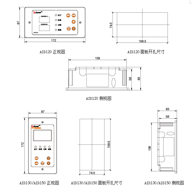醫(yī)用報警與顯示儀AID150:采用LCD液晶顯示,RS485總線,可集中監(jiān)控多16套AIM-M100醫(yī)療智能絕緣監(jiān)測儀的數(shù)據(jù),可遠(yuǎn)程聲光報警。AID150還可監(jiān)控多套AIM-R100剩余電流監(jiān)測儀的數(shù)據(jù)。