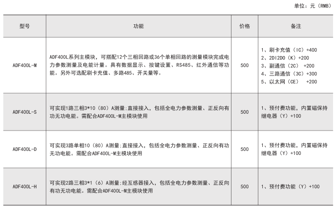 集中抄表多用戶電表ADF400L,通過模塊組合的方式大可實現12路三相或36路單相的直接接入測量或12路三相互感器接入測量、直接接入和互感器接入的混合測量方式,該系列電能表因準確度高、集中安裝、集中管理、安裝靈活性高,互不干擾等優勢深受小區、學校、企業等的青睞。該系列儀表支持預付費功功能。