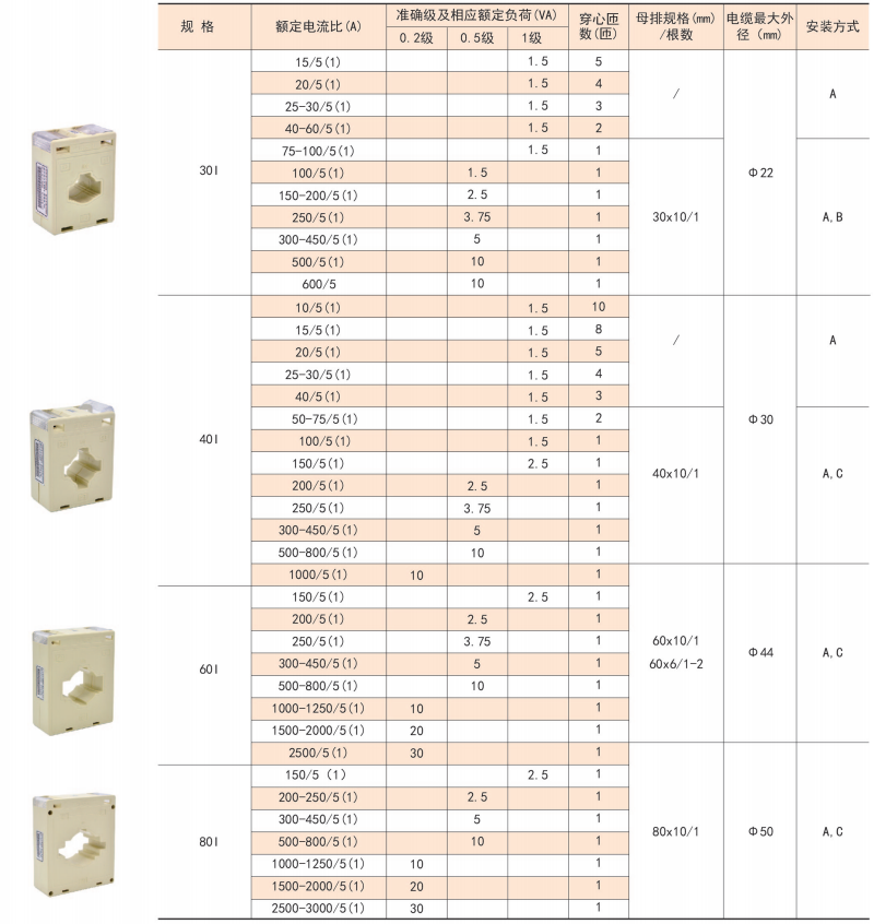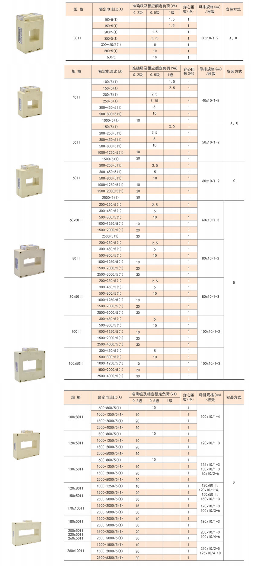 該系列互感器作為交流電流信號采集元件,可與測量儀表配套使用,一次電流測量范圍5-6300A,二次輸出5A或1A,測量范圍為額定值的5-120%。