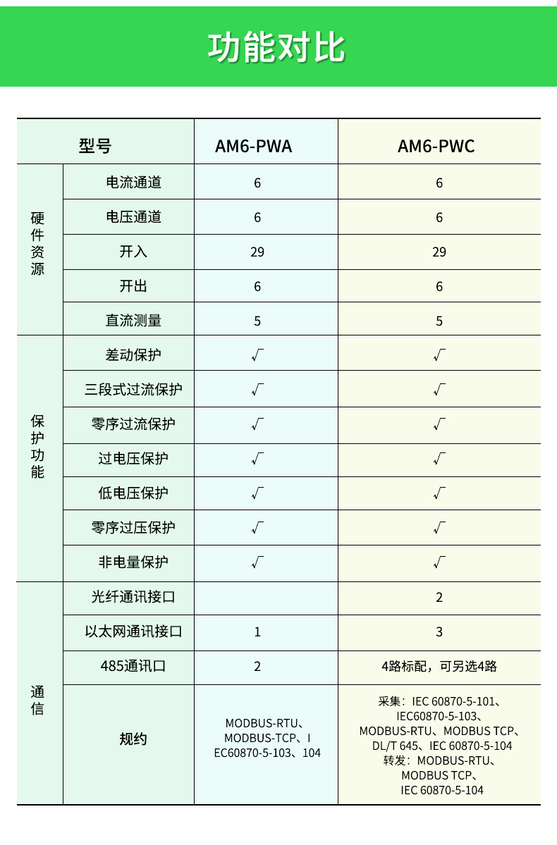 AM6-PWC箱變保護測控裝置 備差動保護及過流保護針對光伏及風能升壓變不同要求研發的集保護,測控,通訊一體化裝置,具備差動保護及過流等相關保護,適用于高低壓側兩分支接線的場景。
