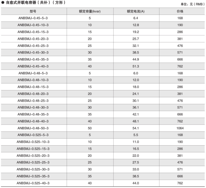 自愈式并聯(lián)電容器方形ANBSMJ系列
