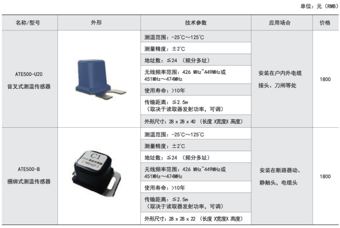 技術要求:1面高壓柜內斷路器觸頭6點、母排3點無源無線測溫訂貨范例: