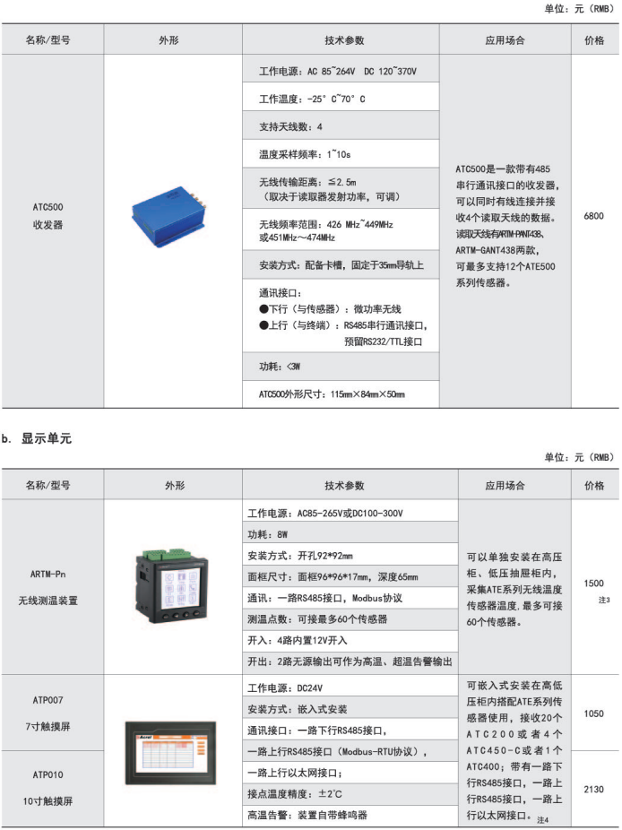 技術要求:10面高壓柜內斷路器觸頭6點、母排3點無線測溫訂貨范例: