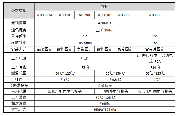 ATE200P戶外表帶捆綁無線測溫傳感器采用表帶式固定在測溫接點處,一般較適應于斷路器觸頭、母排等的測溫。