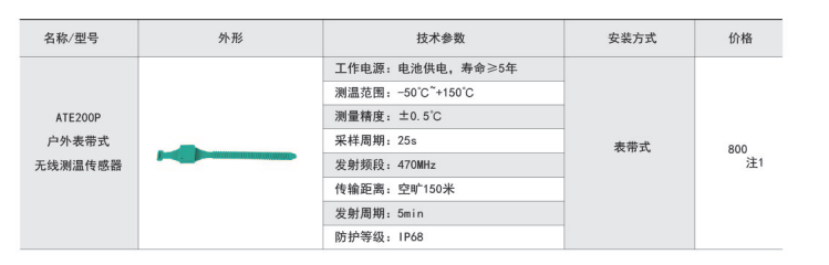 ATE200P戶外表帶捆綁無線測溫傳感器