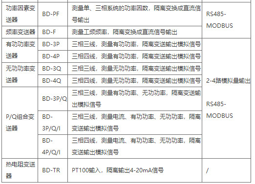 BD系列電力變送器是一種將電網(wǎng)中的電流、電壓、頻率、功率、功率因數(shù)等電參量,經(jīng)隔離變送成線性的直流模擬信號或數(shù)字信號的裝置。