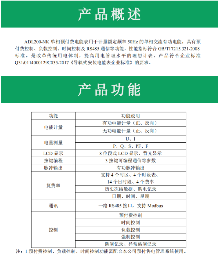 ADL200-NK復費率電能統(tǒng)計預付費電能表用于計量額定頻率50Hz的單相交流有功電能,具有預付費控制、負載控制、時間控制及RS485通信等功能.