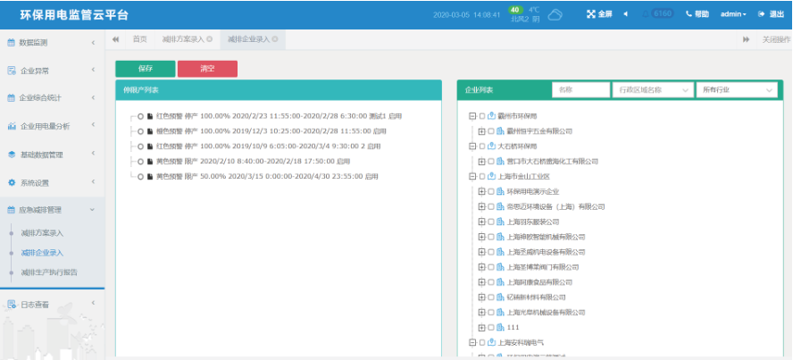2.6.2減排企業錄入:按企業/行業/區域批量配置企業需要執行的減排方案。