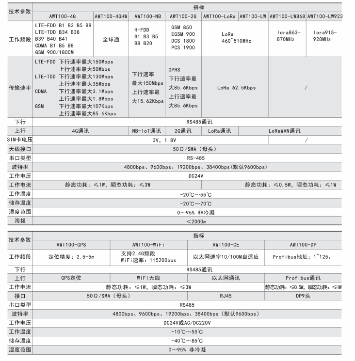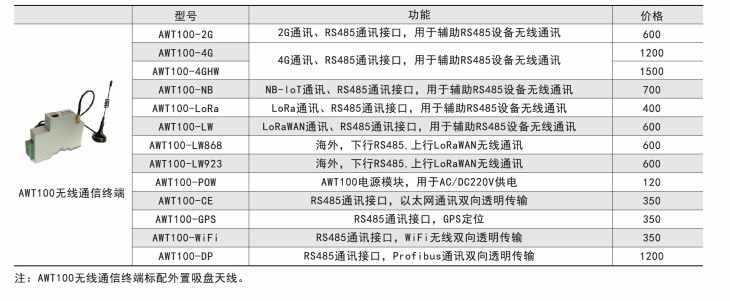 目前,無線技術(shù)憑借著部署容易、建設(shè)成本低、適用環(huán)境廣泛等優(yōu)勢,數(shù)據(jù)多元化逐漸成為未來工業(yè)互聯(lián)網(wǎng)中網(wǎng)絡(luò)發(fā)展及應(yīng)用的重要方向。AWT100 數(shù)據(jù)轉(zhuǎn)換模塊是安科瑞電氣推出的新型數(shù)據(jù)轉(zhuǎn)換 DTU,通訊數(shù)據(jù)轉(zhuǎn)換包括 2G、4G、NB、LoRa、LoRaWAN,GPS,WiFi,CE,DP 等通訊方式,下行接口提供了標(biāo)準(zhǔn) RS485 數(shù)據(jù)接口,可以方便的連接電力儀表、RTU、PLC、工控機(jī)等設(shè)備,僅需一次性完成初始化配置,就可以完成對 MODBUS 設(shè)備的數(shù)據(jù)采集;同時(shí) AWT100 系列無線通訊終端采用了功能強(qiáng)大的微處理芯片,配合內(nèi)置看門狗技術(shù),性能可靠穩(wěn)定。
