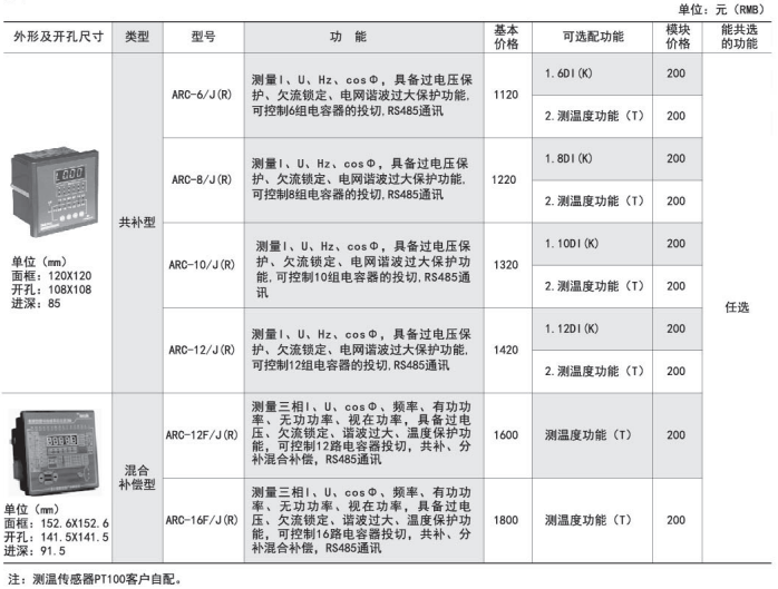 具體型號:ARC-6/J-KT共補(bǔ)型外形及尺寸