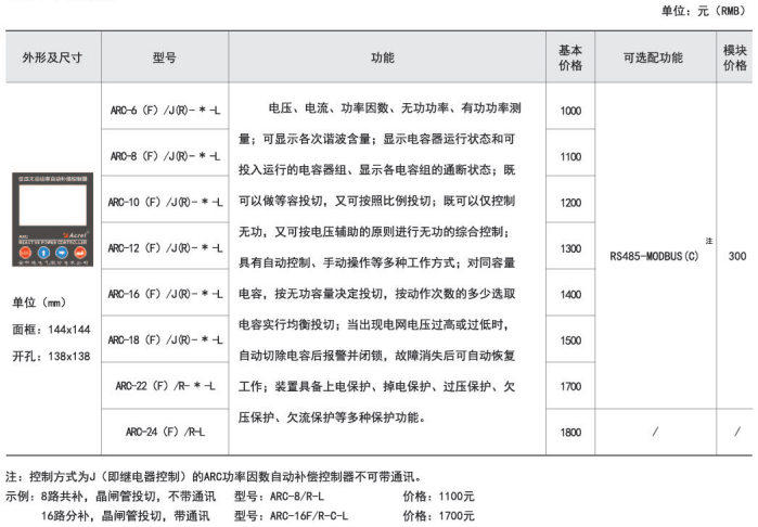 ● ARC智能電容專用功率因數(shù)自動補(bǔ)償控制器